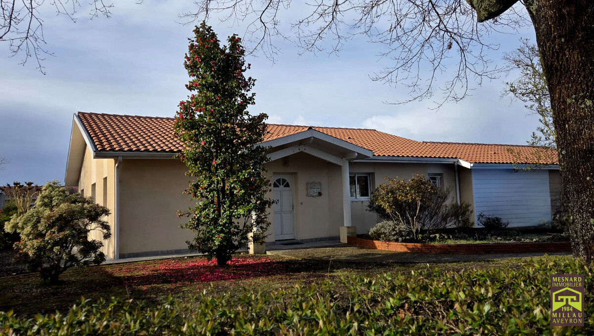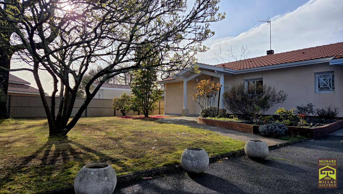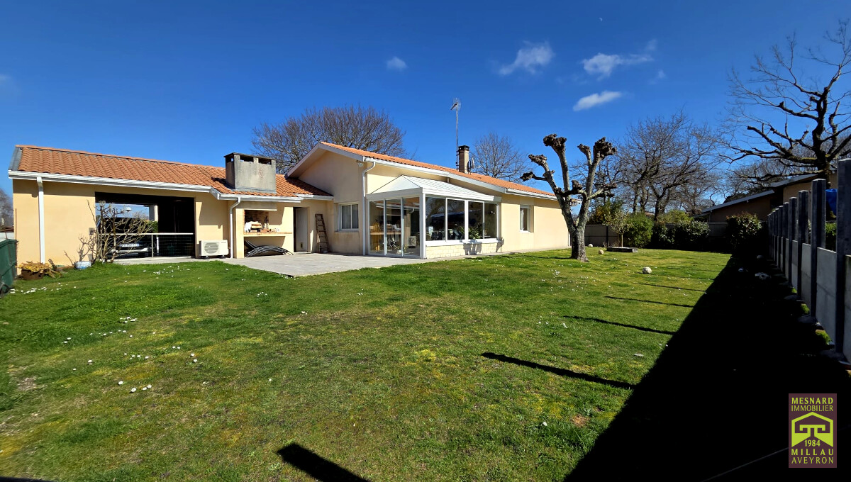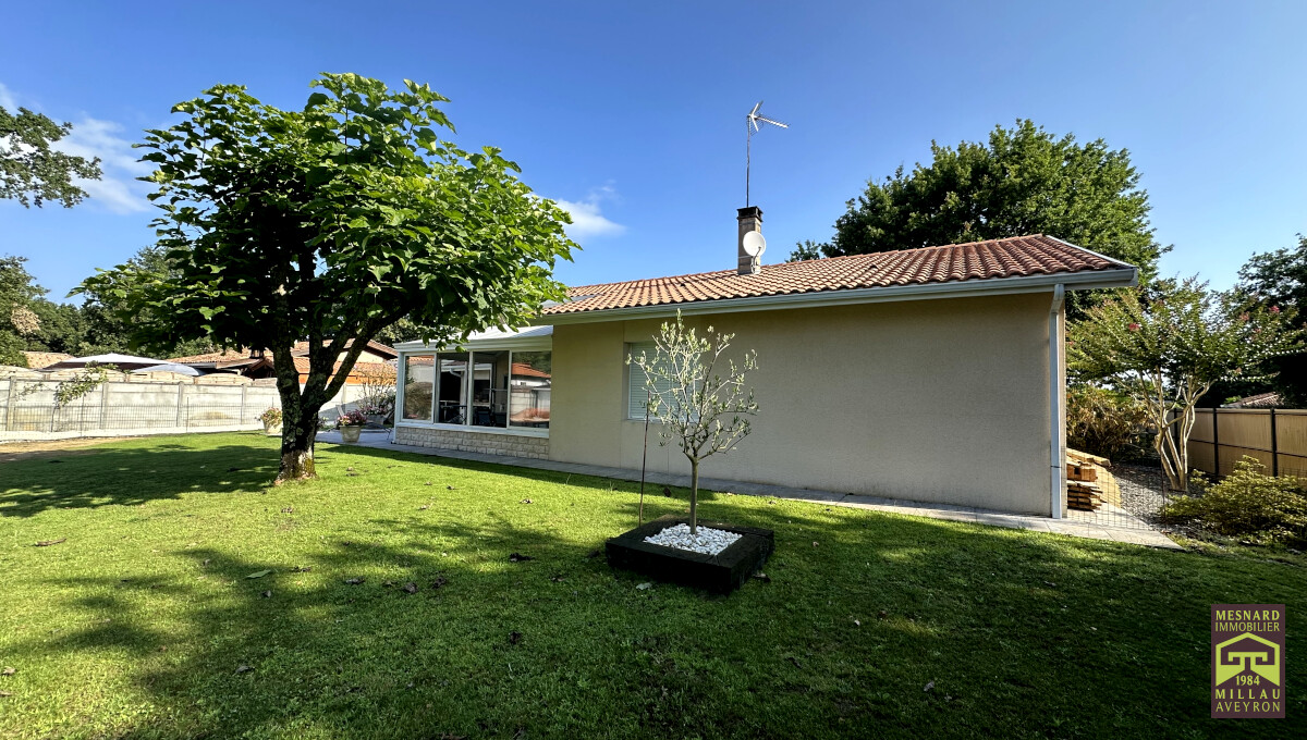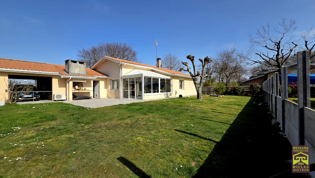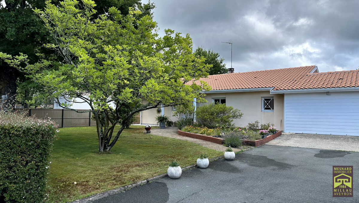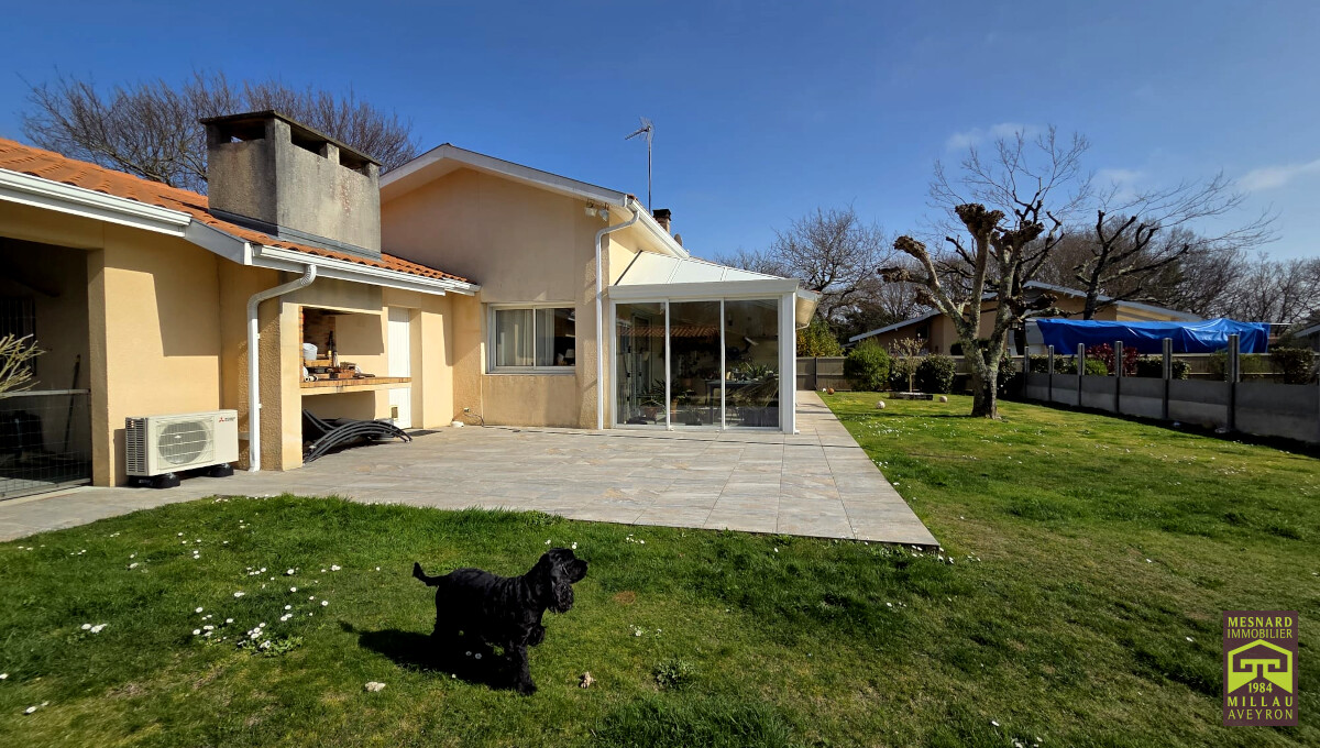 Villa de plain-pied et de type 5, pièce de vie de plus de 55 m2, très beau terrain clos et arboré de 910 m2.