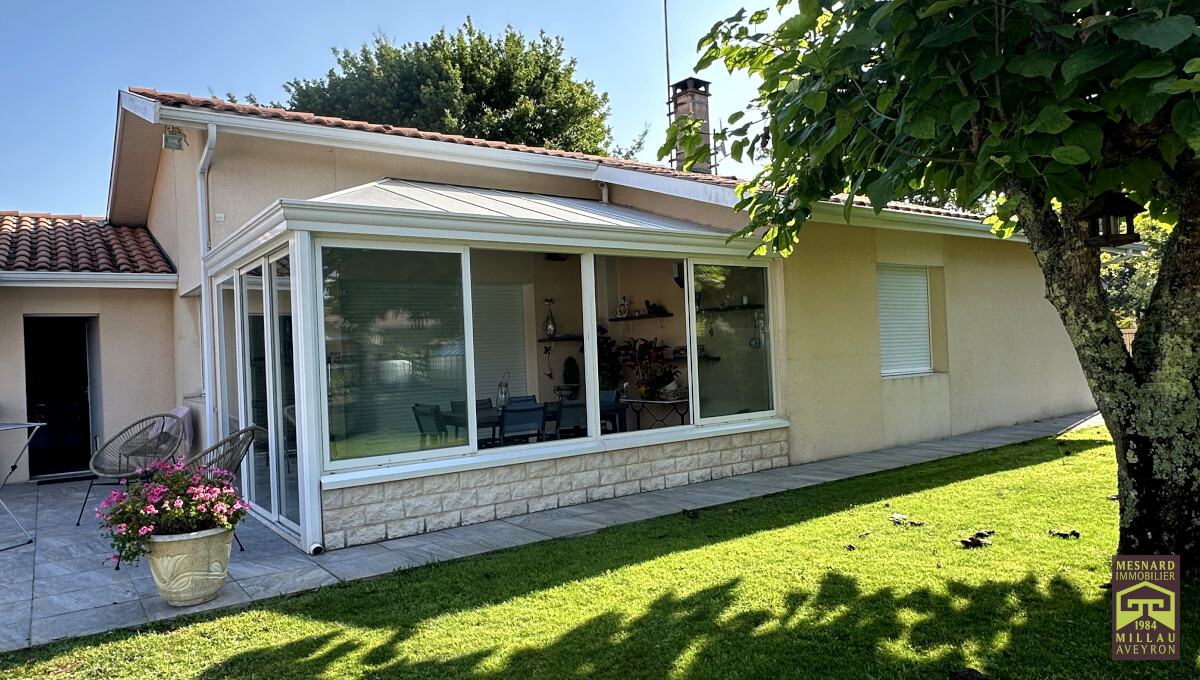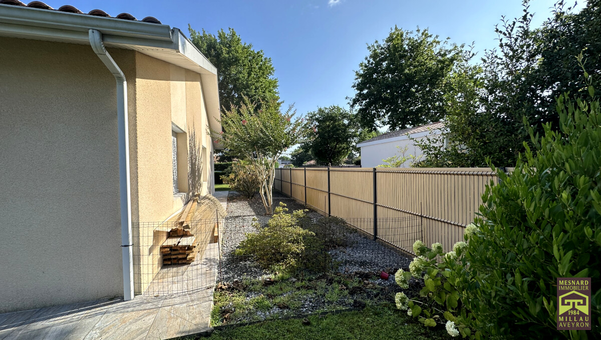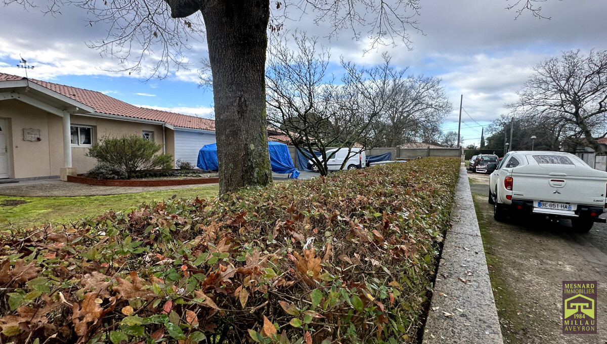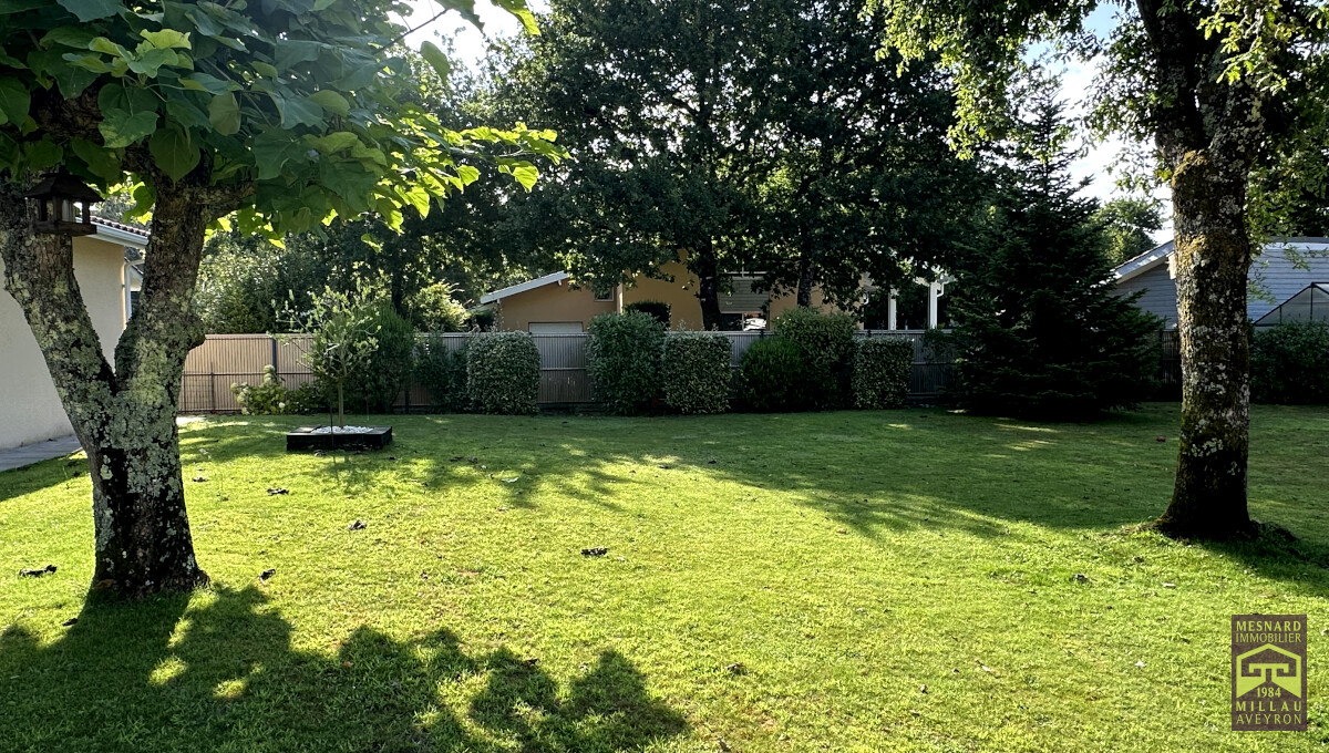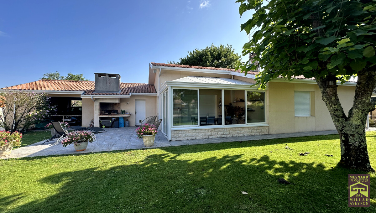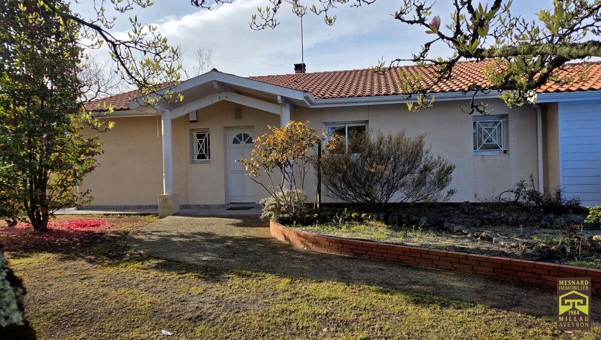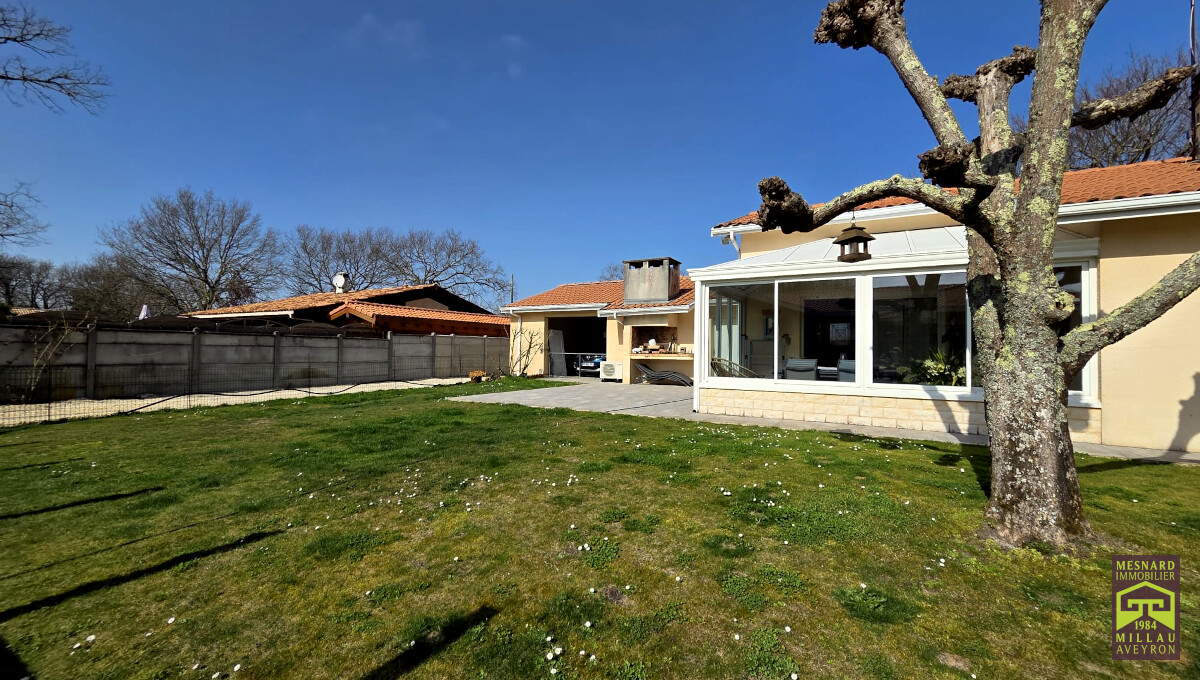 Villa de plain-pied et de type 5, pièce de vie de plus de 55 m2, très beau terrain clos et arboré de 910 m2.