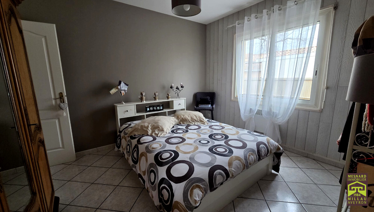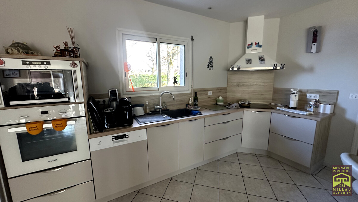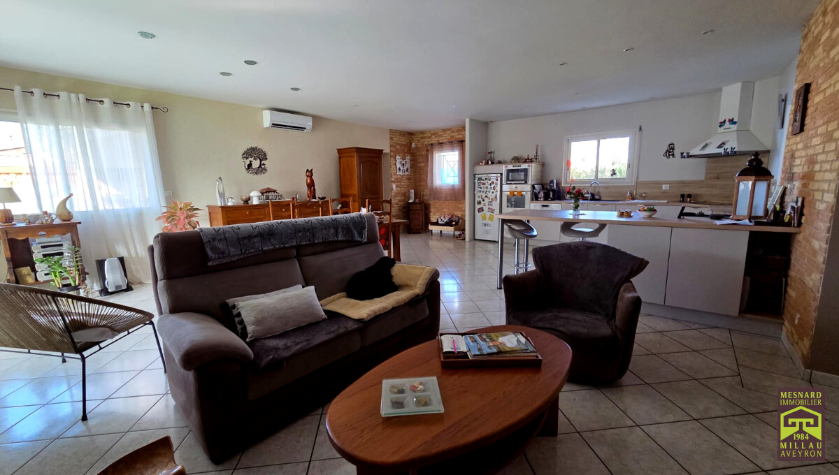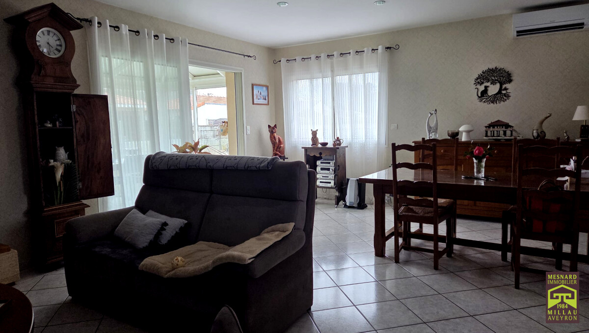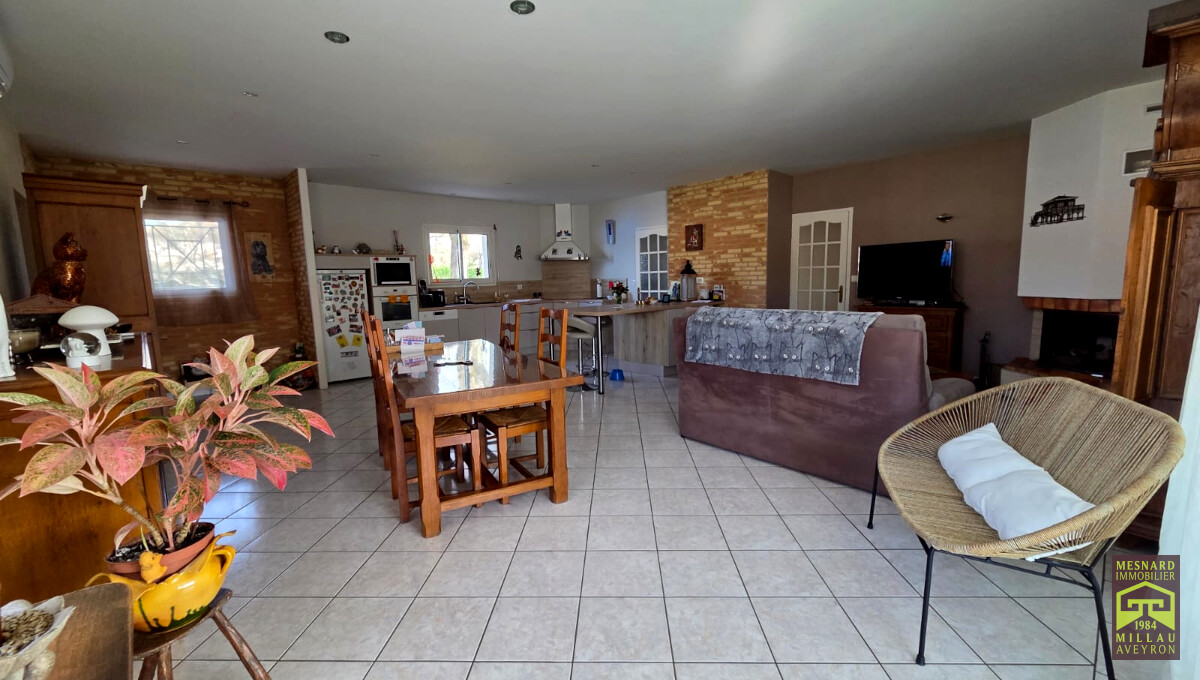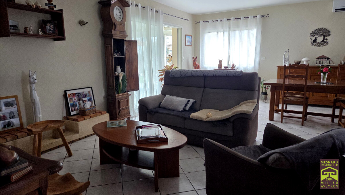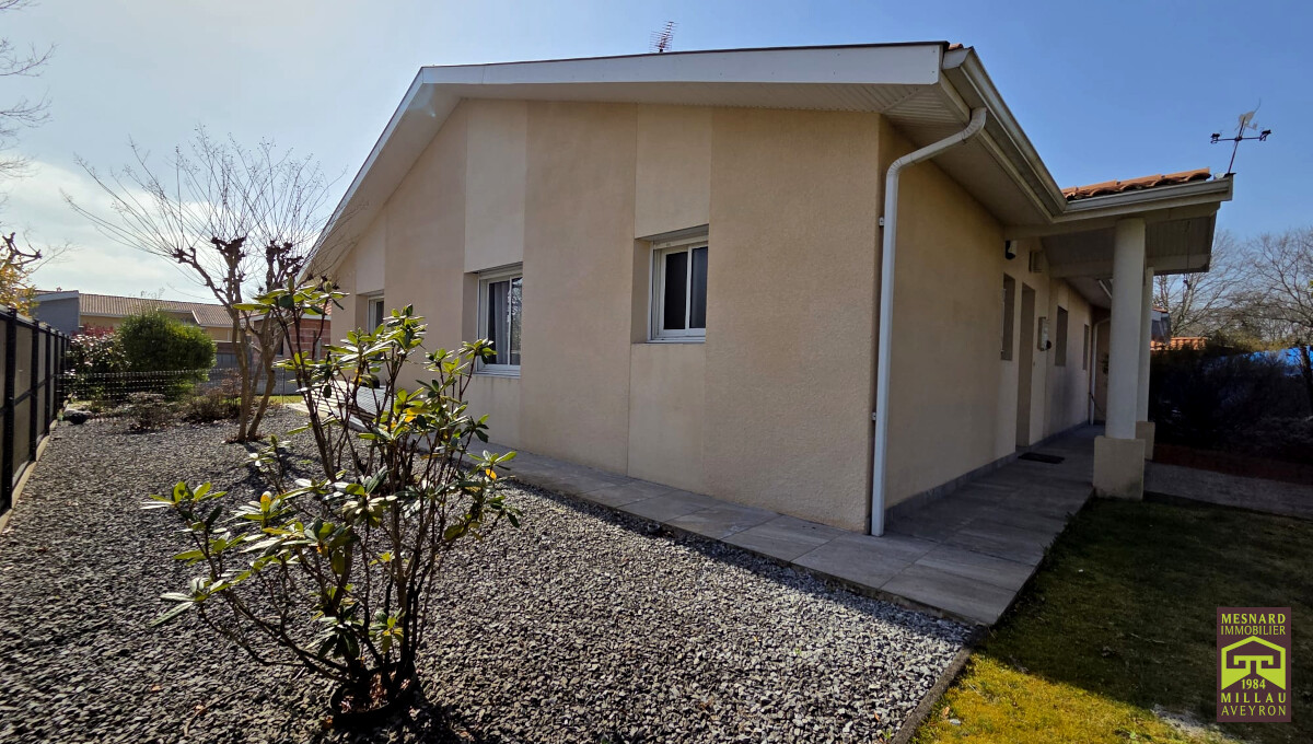 Villa de plain-pied et de type 5, pièce de vie de plus de 55 m2, très beau terrain clos et arboré de 910 m2.